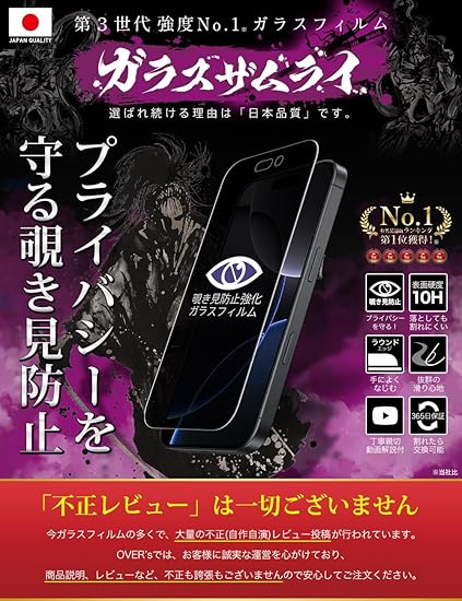 ガラスザムライ iPhone 17 用 iPhone 17 Pro 用 iPhone 16 Pro 用 ガラスフィルム ブルーライトカット x 覗き見防止 硬度 10H 日本製素材 強化ガラス 保護フィルム 米軍MIL規格 412-blue-nzb 436-blue-nzb 438-blue-nzb a