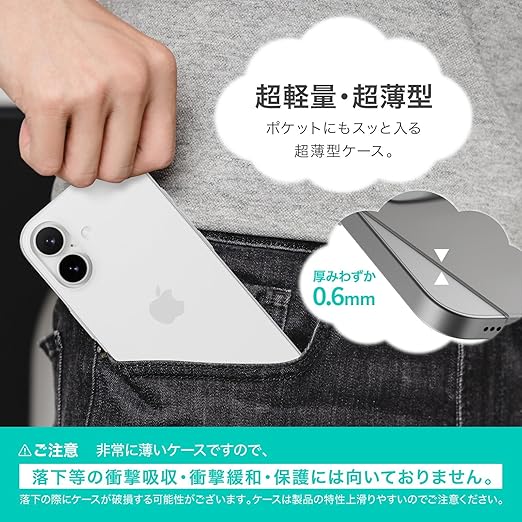 【製品特徴】… ◆ ストラップホール : なし ◆ Qiワイヤレス充電 : 対応(機器によって非対応の場合あり) ◆ 装着時の本体色 : 透けて見える ◆ カード収納 : なし ◆ 衝撃保護性能 : なし ◆ ガラスフィルム互換性 : 対応(
