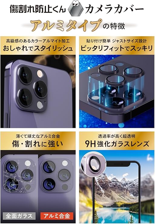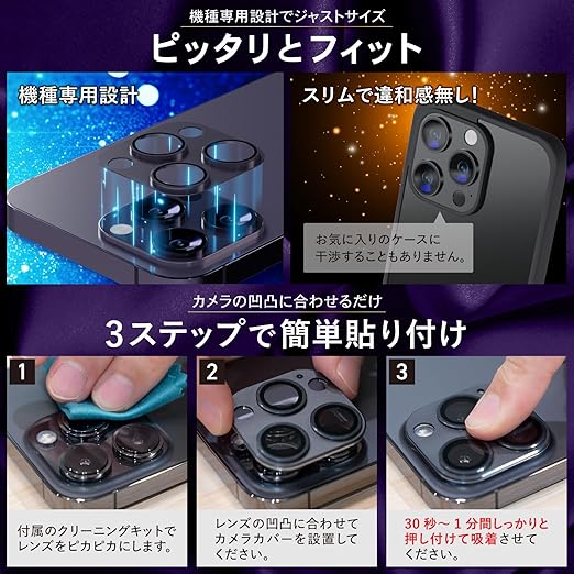 【対応機種】:iPhone 17 用 ※機種間違いが多発しております。事前にiPhoneの設定から機種名をご確認ください。(設定>一般>情報>機種名) 【セット内容】:アルミ合金製カメラカバー×2個、付属品 2セット (拭き取りシート、クリーニングクロス、ホコリ除去シール)