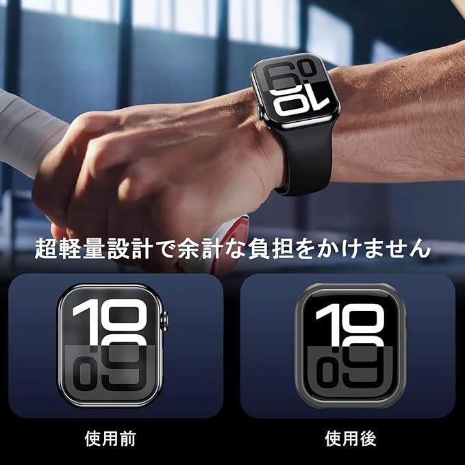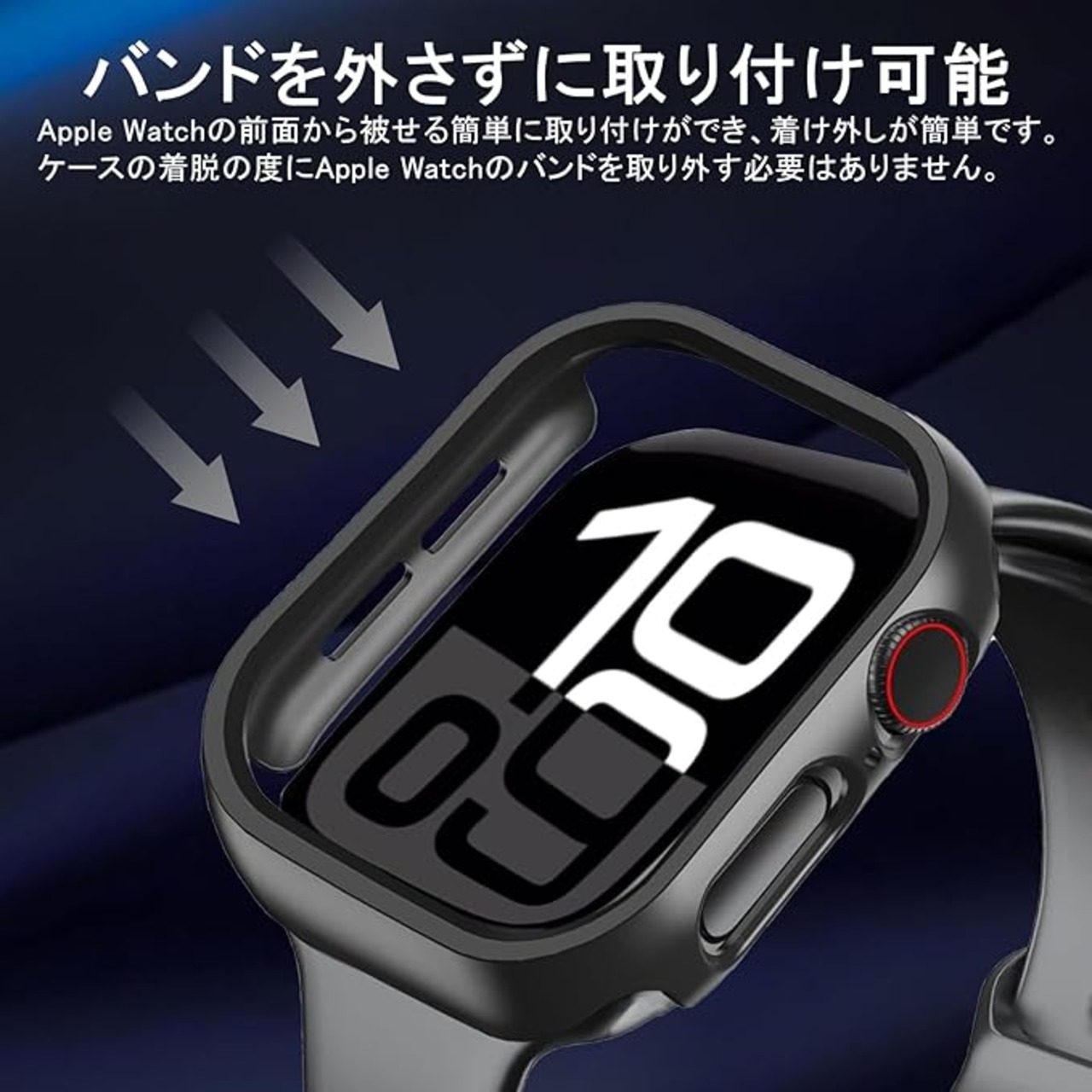 【対応機種】Apple watch Series 11/10 用(46mm専用)。Apple Wtach Series 11/10 46mmに合わせて精密設計されており、違和感なく本体にぴったりフィットします。ご注意:このケースはPCフレームケースで、表面にガラスフィルムがありません。ご購入いただけますようお願い致します。