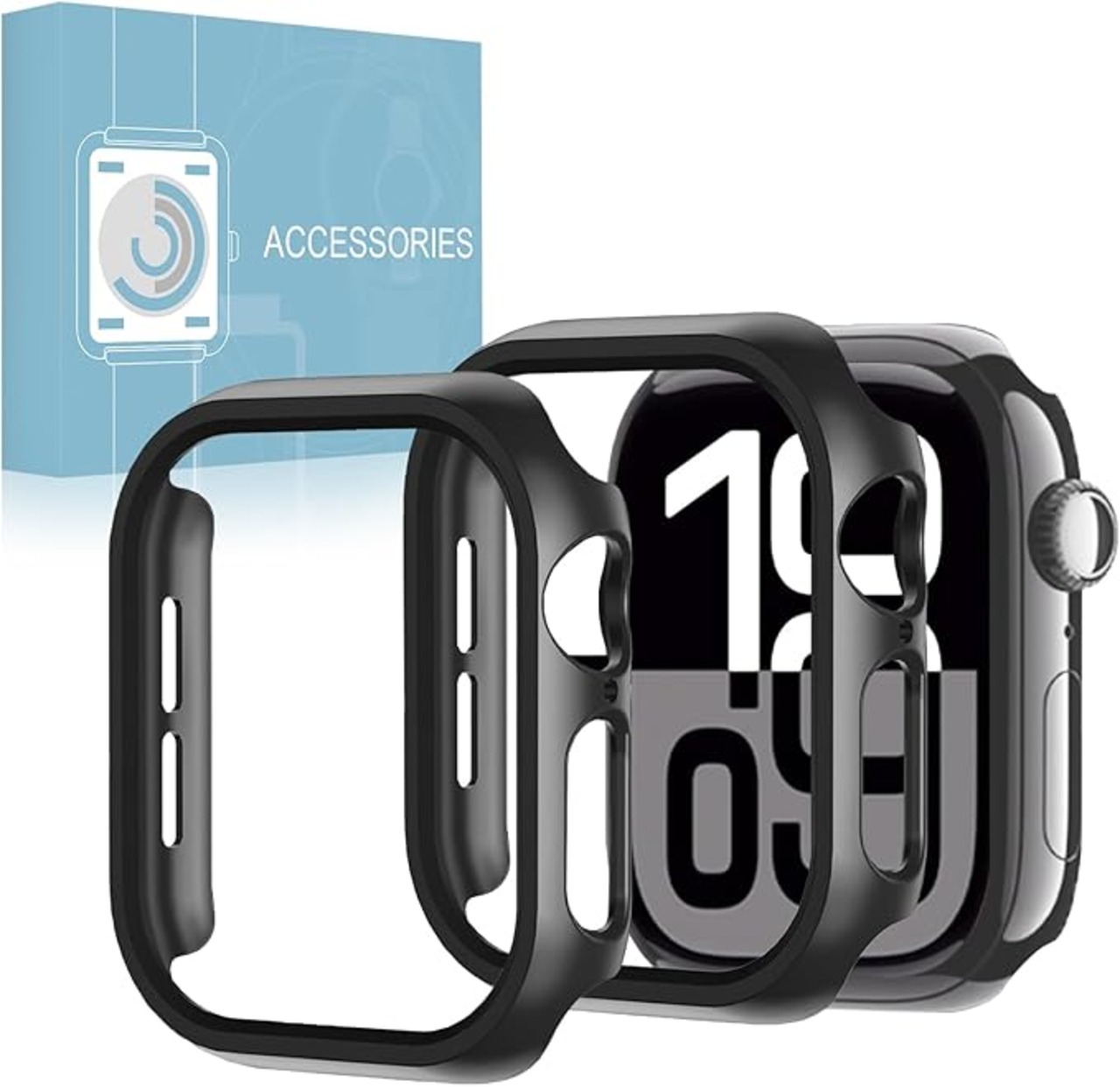 【2枚組】Apple Watch Series 11(2025)/10(2024) 46mm 用 ケース アップルウォッチ11/10 46mm スマートウォッチ スリムケース 保護カバー PC素材 側面 耐衝撃 衝撃吸収 液晶部分覆わないタイプ 取り付け簡単 (ブラック) a