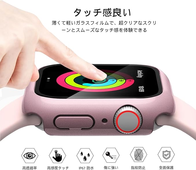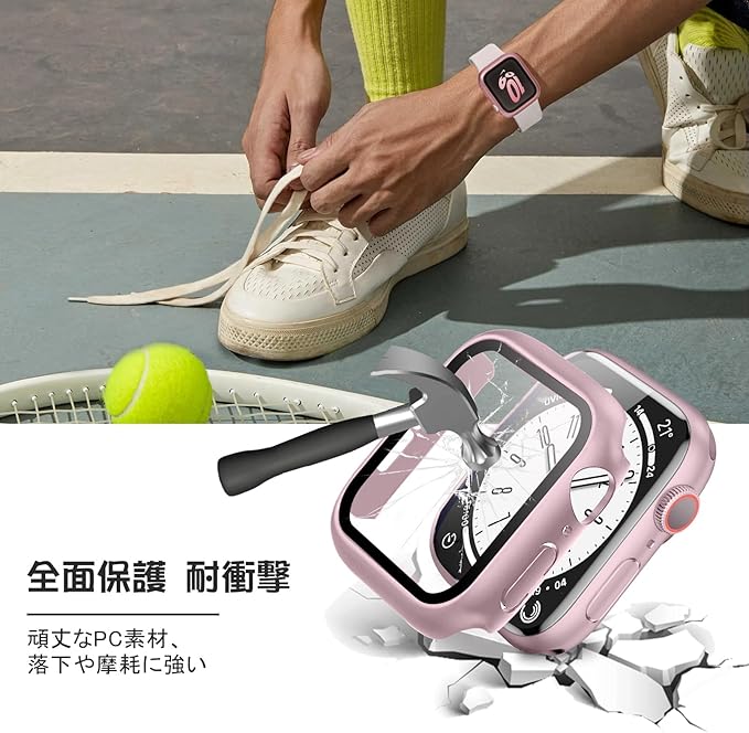 【全面保護】この製品はPC+ 強化ガラス素材を採用して、日常生活での衝撃から Watch を保護します。硬度 9H の強化ガラスで、超クリアな画面を提供して、なお画面の損傷を防止および回避し、 Watchをしかっり保護します。