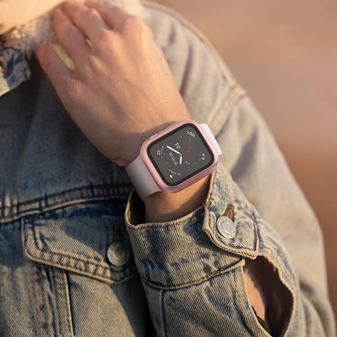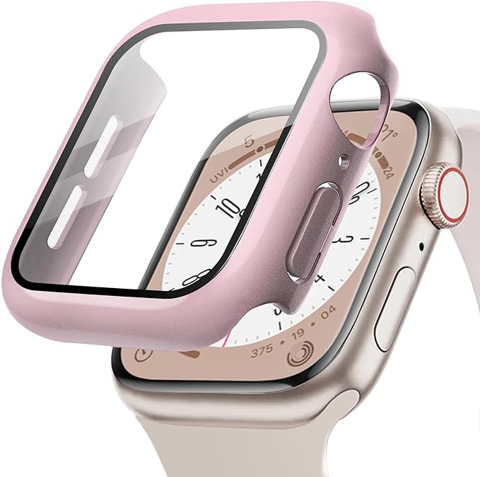 POLINK for Apple Watch用 ケース Series 11/10/9/8/7/6/5/4/SE3/SE2/SE 46mm PC素材 強化ガラス アップルウォッチ 保護用カバー 超薄型 高耐久 耐衝撃 高透過率 指紋防止 for Apple Watch用 カバー 全面保護 ローズゴールド a