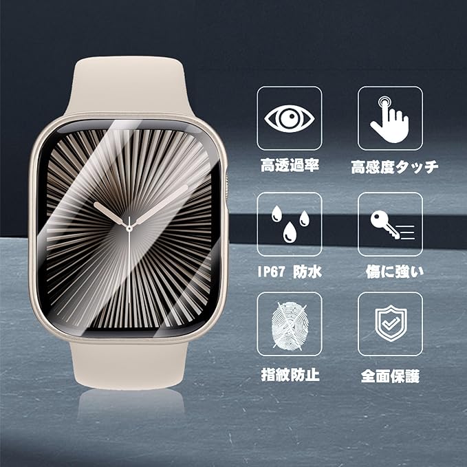 【360°全面保護&覗き見防止】:このアップルウォッチ カバーの液晶保護フィルムは硬度9Hの強化ガラスを採用し、Apple Watch カバーのフレームはPC(ポリカーボネート)素材で構成されており、耐傷性、耐衝撃性に優れ、アップルウォッチへの落下や傷など不測の事態の損傷を最小限に