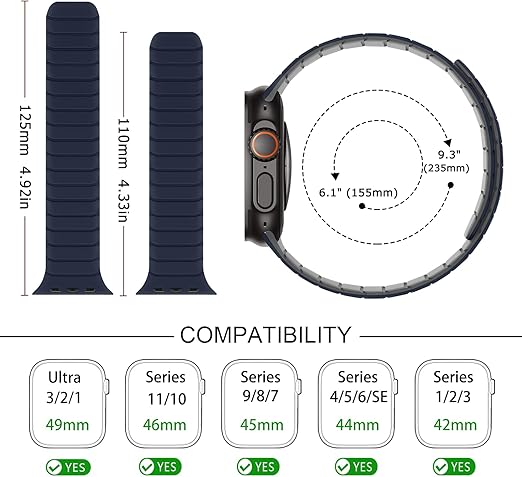 【対応モデルとサイズ】Tasikar 磁気シリコンバンド Apple Watch シリーズ 11 46mm(2025) シリーズ 10 46mm(2024)、Ultra 3 (2025) Ultra 2 (2023) Ultra (2022) 49mm、シリーズ 9 (2023) シリーズ 8 (2022) シリーズ 7 (2021) 45mm、44mm SE (2025) SE (2022) シリーズ 6 (2020) SE (2020) シリーズ 5 (2019) シリーズ 4、42mm シ