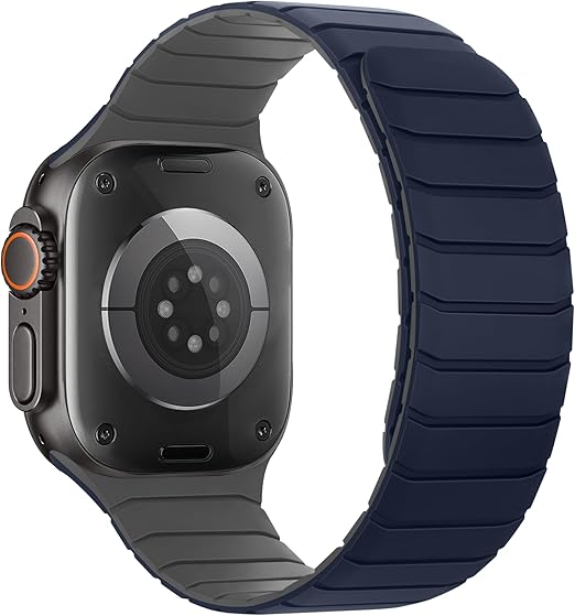 磁気 コンパチブル Apple Watch バンド 49mm 46mm 45mm 44mm 42mm ソフトシリコン交換用ループリストバンド ンパチブル アップルウォッチ バンド Ultra 3 2 1/SE Series 11/10/9/8/7/6/5/4/3/2/1に対応 柔らかい 男女兼用,ダークブルーグレー a