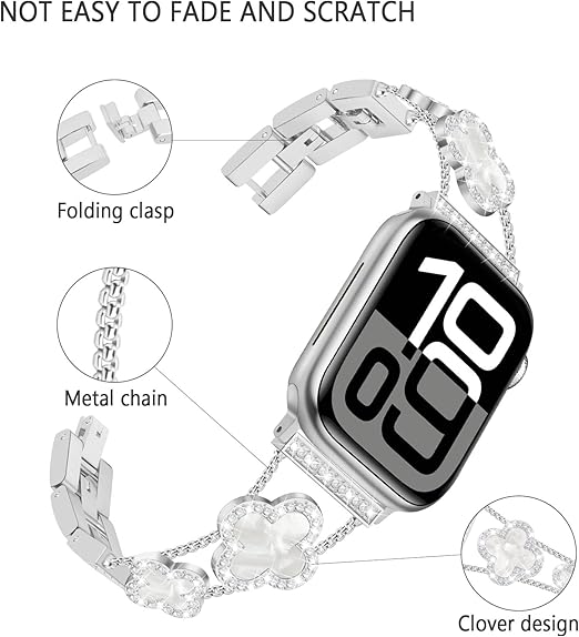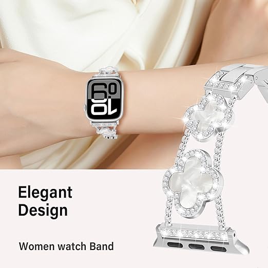 Sixmoat バンドコンパチブル Apple Watch バンド レディース 38mm 40mm 41mm 42mm 44mm 45mm 46mm 49mm キラキラブレスレット デザイナー ドレッシー クローバー iWatch シリーズ 11 10 9 8 7 6 5 4 3 SE Ultra 対応 (シルバー) a