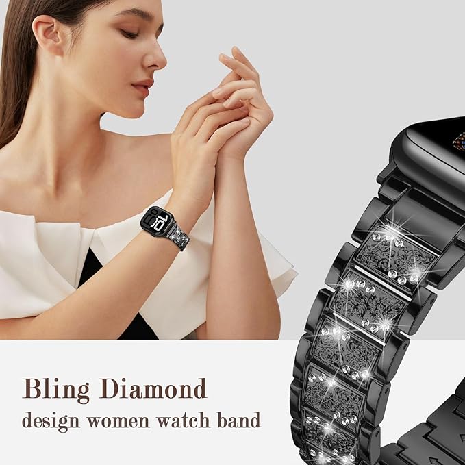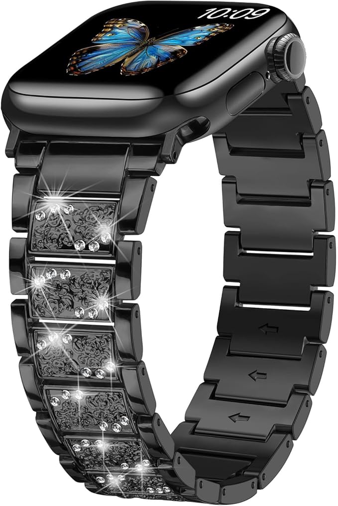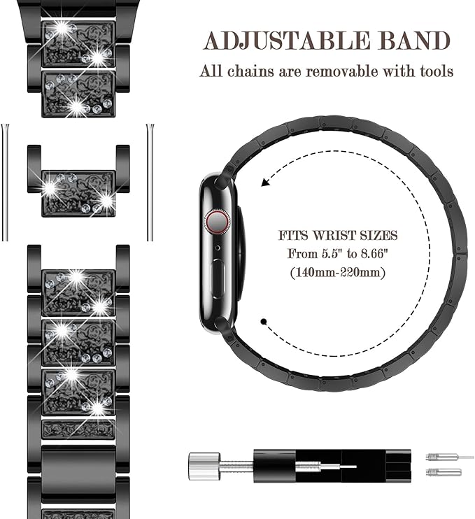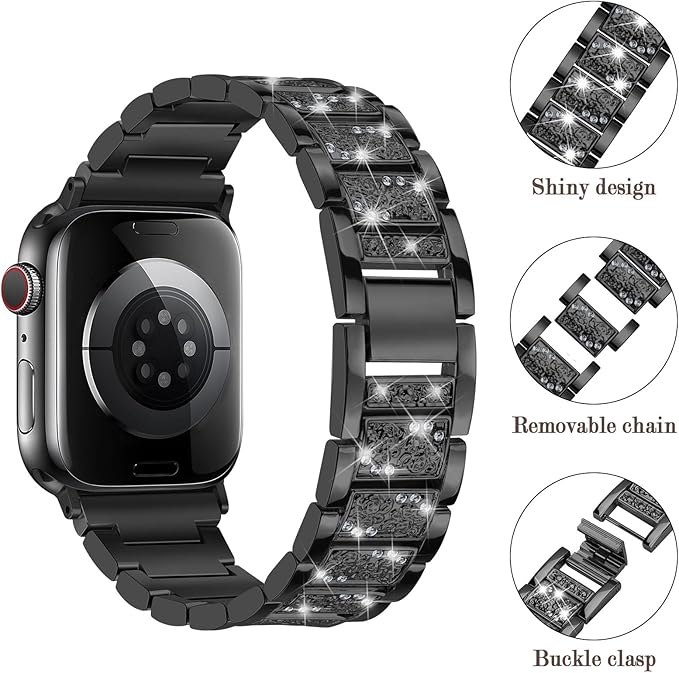 Sixmoatブリンブリンダイヤモンド金属バンド コンパチブル Apple Watchバンド レディース 38mm 40mm 41mm 42mm 44mm 45mm 46mm 49mm,ドレッシーパターン交換用ブレスレット iWatch Ultra SEシリーズ11 10 9 8 7 6 5 4 3用 (ブラック) a