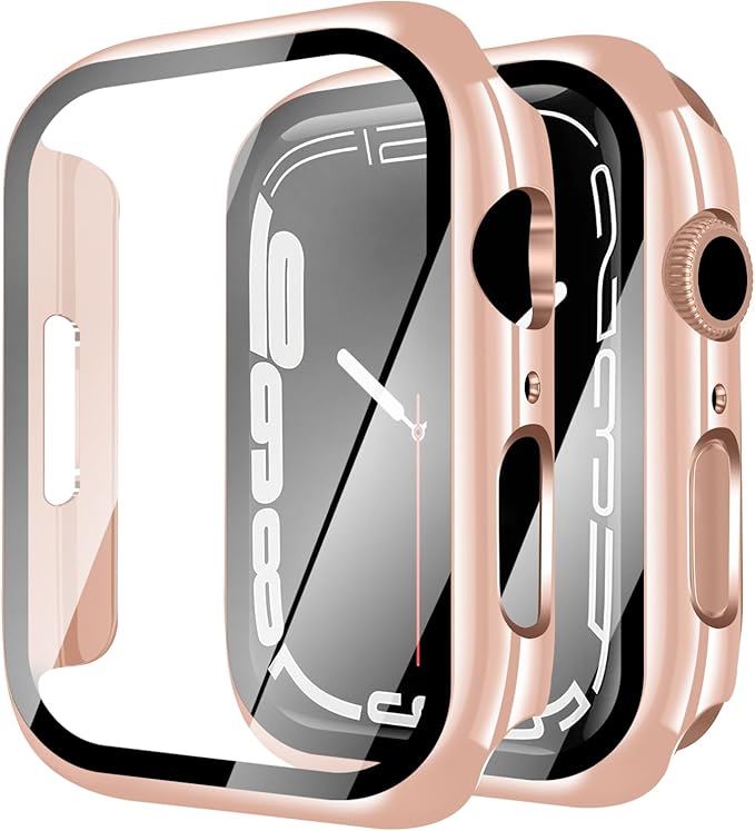 YUGYUG 対応 アップルウォッチ カバー Series 11/10 アップルウォッチ ケース PC素材 光沢式 Apple Watch ケース ガラスフィルム 一体型 日本旭硝子材 二重構造 Apple Watch カバー 全面保護 強化ガラス キズ防止(46mm,ローズゴールド) a