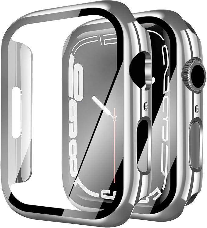 YUGYUG 対応 アップルウォッチ カバー Series 11/10 アップルウォッチ ケース PC素材 光沢式 Apple Watch ケース ガラスフィルム 一体型 日本旭硝子材 二重構造 Apple Watch カバー 全面保護 強化ガラス キズ防止(46mm,シルバー) a