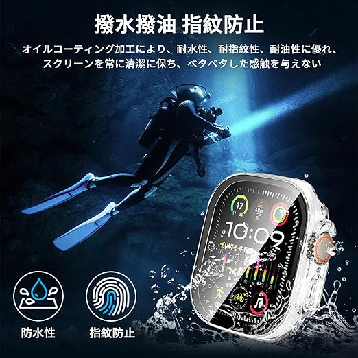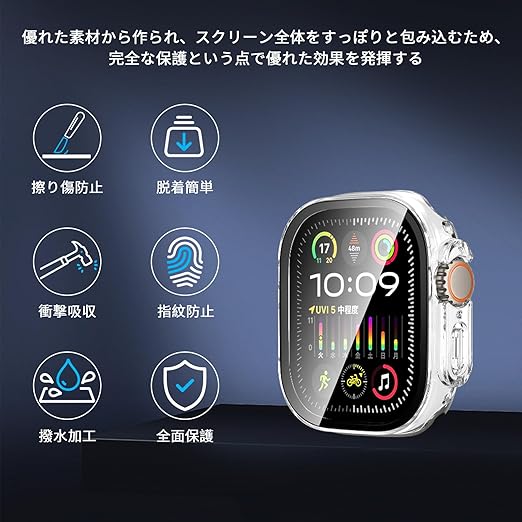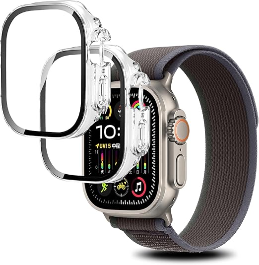 【2枚セット】For Apple Watch Ultra 3 ケース 49mm アップルウォッチ Ultra 3 49mm カバー ガラスフィルム 一体型 Ubefuu 全面保護 高透過率 高感度タッチ 軽量 衝撃吸収 指紋防止 防水防塵(クリア) a