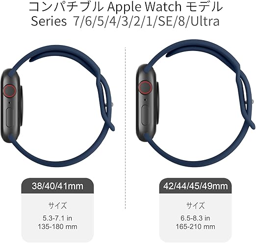 【対応機種】最新Apple Watch Series Series 10/9/8/7/SE/6/5/4/3/2/1/Ultra/Ultra2 49mm/46mm/45mm/44mm/Series3 2 1の42mm交換バンド。49mm/46mm/45mm/44mm/42mm(Series3 2 1)のサイズは165 - 210mmの手首周りに適します。購入する前に、お手首の周りを測定してください。