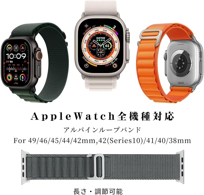 アルパインループ スポーツバンド Apple Watch Urtra 交換ベルト バンド ナイロン Apple Watch Series 10/9/8/7/6/5/4/3/SE/Ultra 49 46 45 44 42 41 40 38mm iwatch アップルウォッチ10 長さ調節 柔らかい 防汗 通気 軽量 快適
