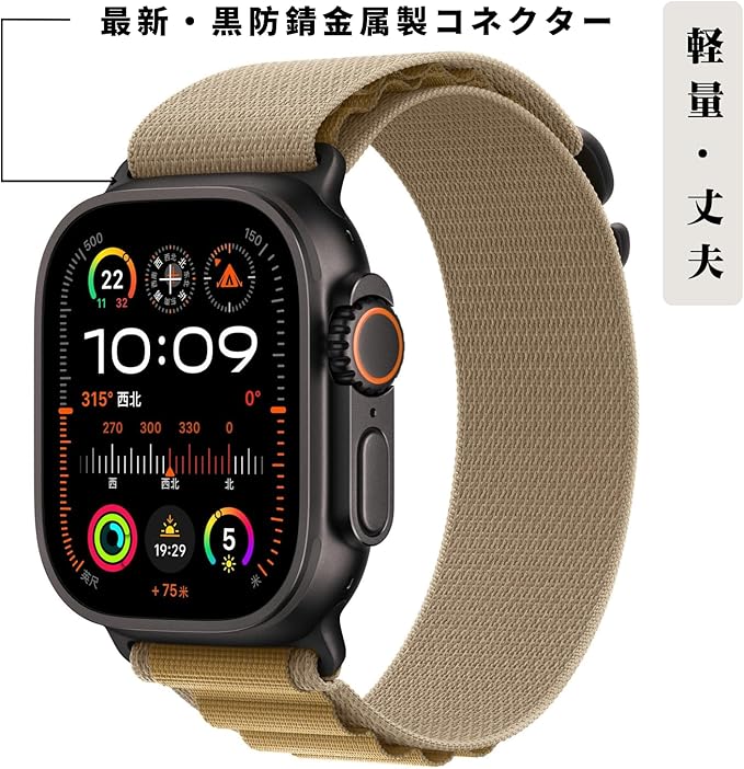 アルパインループ スポーツバンド Apple Watch Urtra 交換ベルト バンド ナイロン Apple Watch Series 10/9/8/7/6/5/4/3/SE/Ultra 49 46 45 44 42 41 40 38mm iwatch アップルウォッチ10 長さ調節 柔らかい 防汗 通気 軽量 快適 a