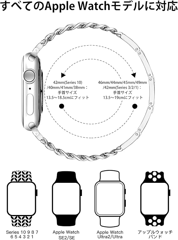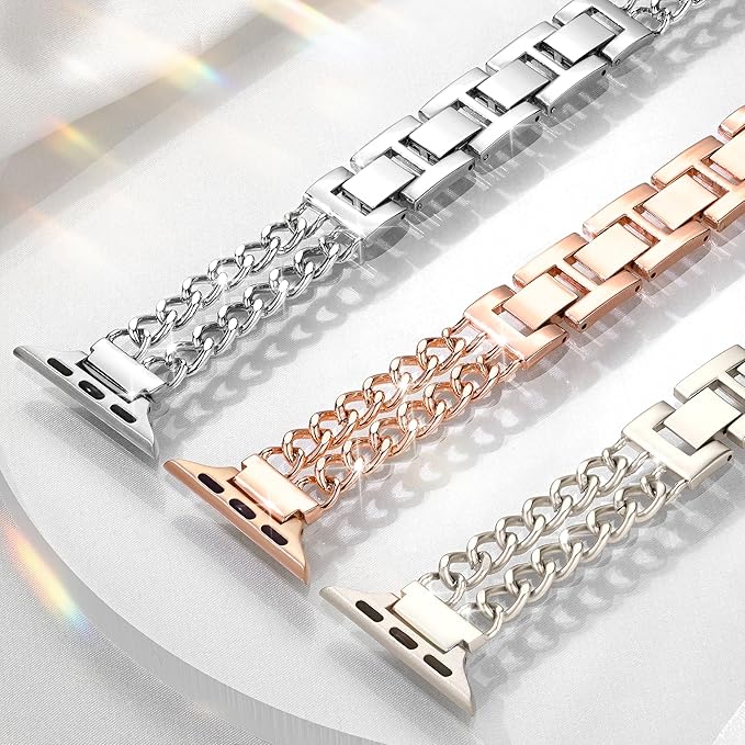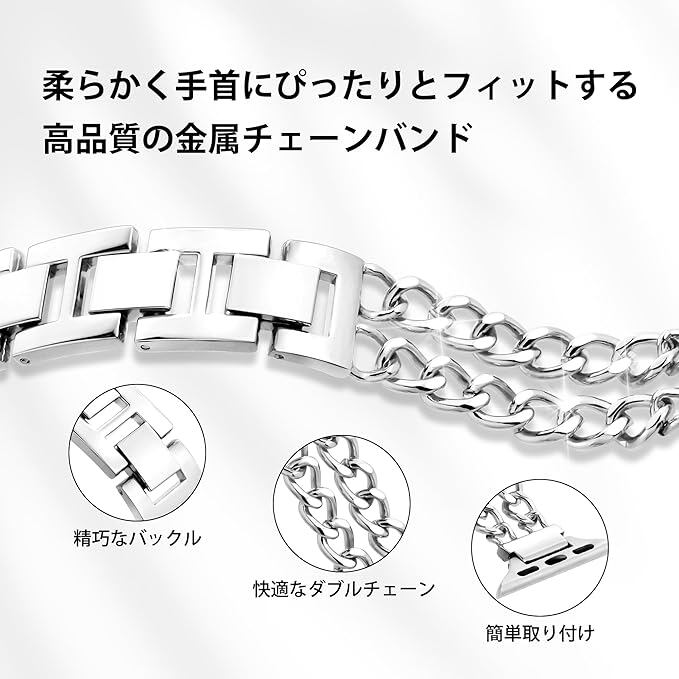 Pleixiu おしゃれ アップルウォッチ バンド Apple Watch バンド 超細ダブルチェーン メタル ベルト レディース 38mm 40mm 41mm 42mm 44mm 46mm 45mm 49mm 互換iWatch Series 10 9 SE 8 7 6 5 4 3 2 1 Ultra