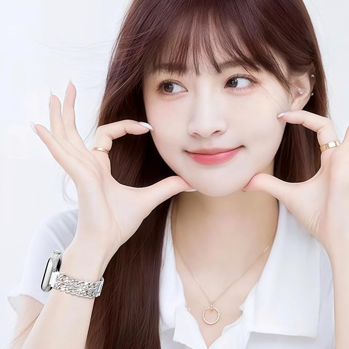 Pleixiu おしゃれ アップルウォッチ バンド Apple Watch バンド 超細ダブルチェーン メタル ベルト レディース 38mm 40mm 41mm 42mm 44mm 46mm 45mm 49mm 互換iWatch Series 10 9 SE 8 7 6 5 4 3 2 1 Ultra a