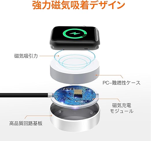 【強力なマグネット式apple watch 充電器】:ChubbyCableのApple Watch se充電器用充電ケーブル 3in1は、強力なマグネット式設計で、Apple Watchと電