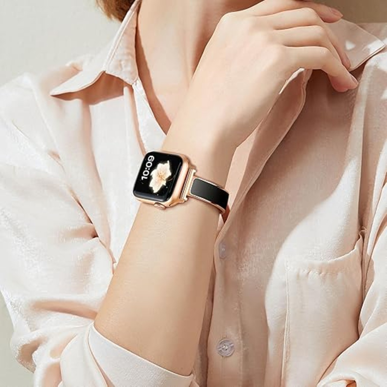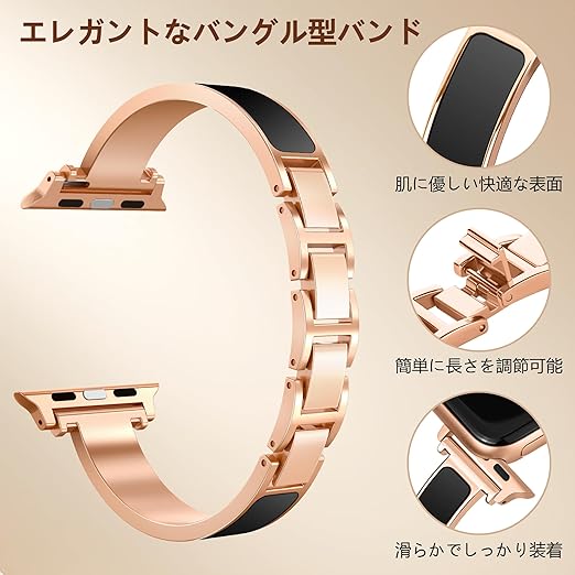 [Bokoios] おしゃれバングルバンドコンパチブル アップルウォッチ バンド38mm 41mm 42mm 44mm 45mm 46mm 49mm、対応 かわいいスリム コンパチブル Apple Watch バンド、調整簡単 メタルアップルウォッチ ベルト、レディース Apple Watch ベルトSeries 10 SE 9 8 7 6 5 4 3 2 1 Ultra a