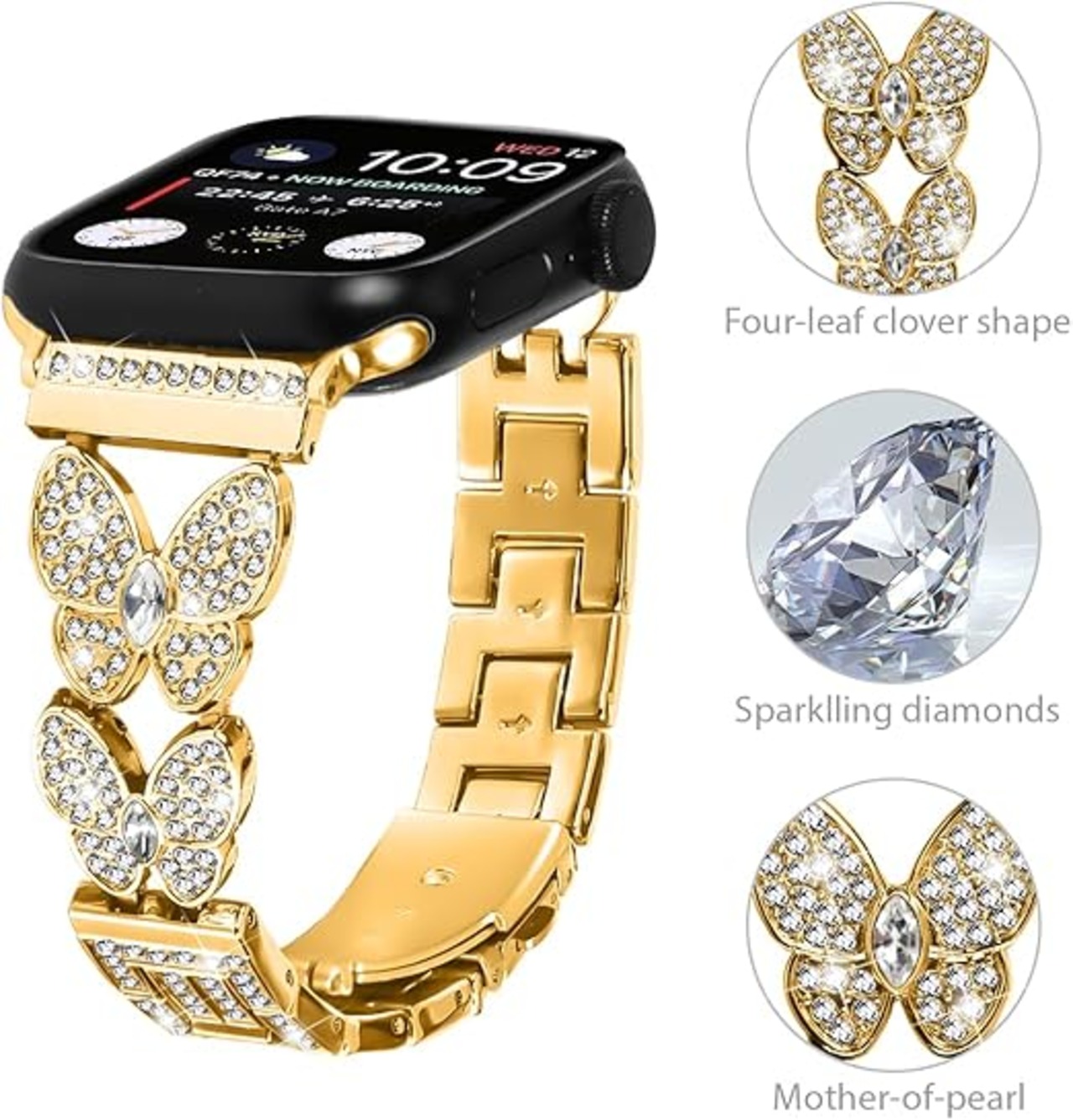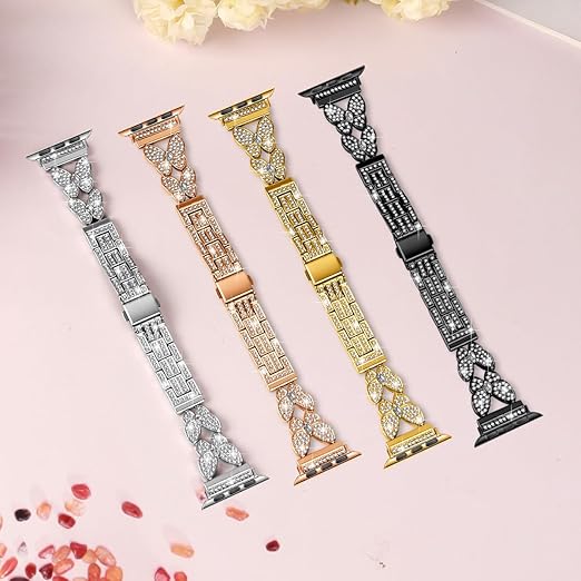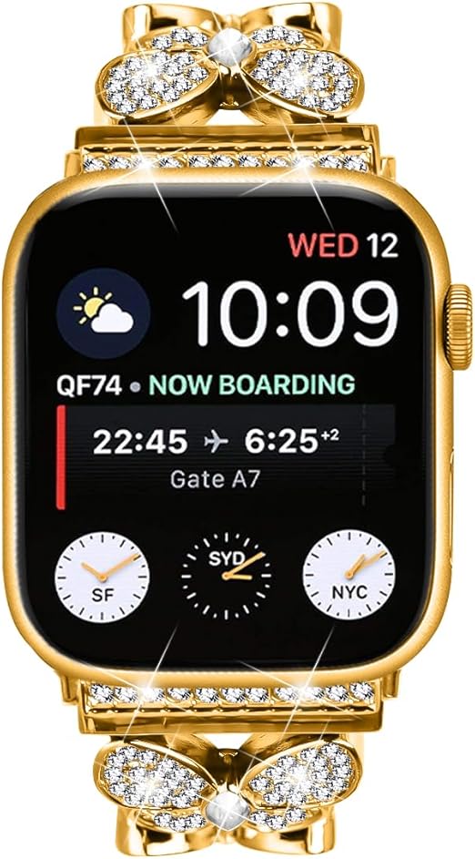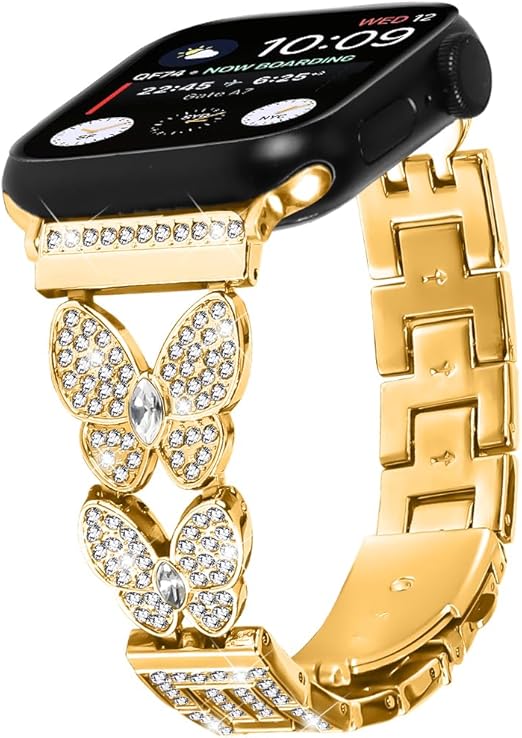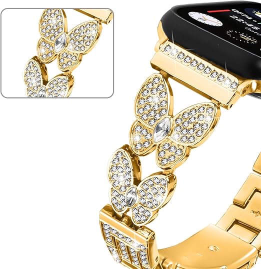 コンパチブルApple Watch 42mm 44mm 45mm 46mm 49mm バンド 優雅で豪奢 女性女の子 バタフライ デザイン 合金製 防水防汗 カザリベルト ドレスアップのため アップルウォッチ 高級バンド Series 10 9 se2023 8 SE2 7 6 5 4 3 2 1 SE iWatch ultra/ultra2 (ゴールド) a