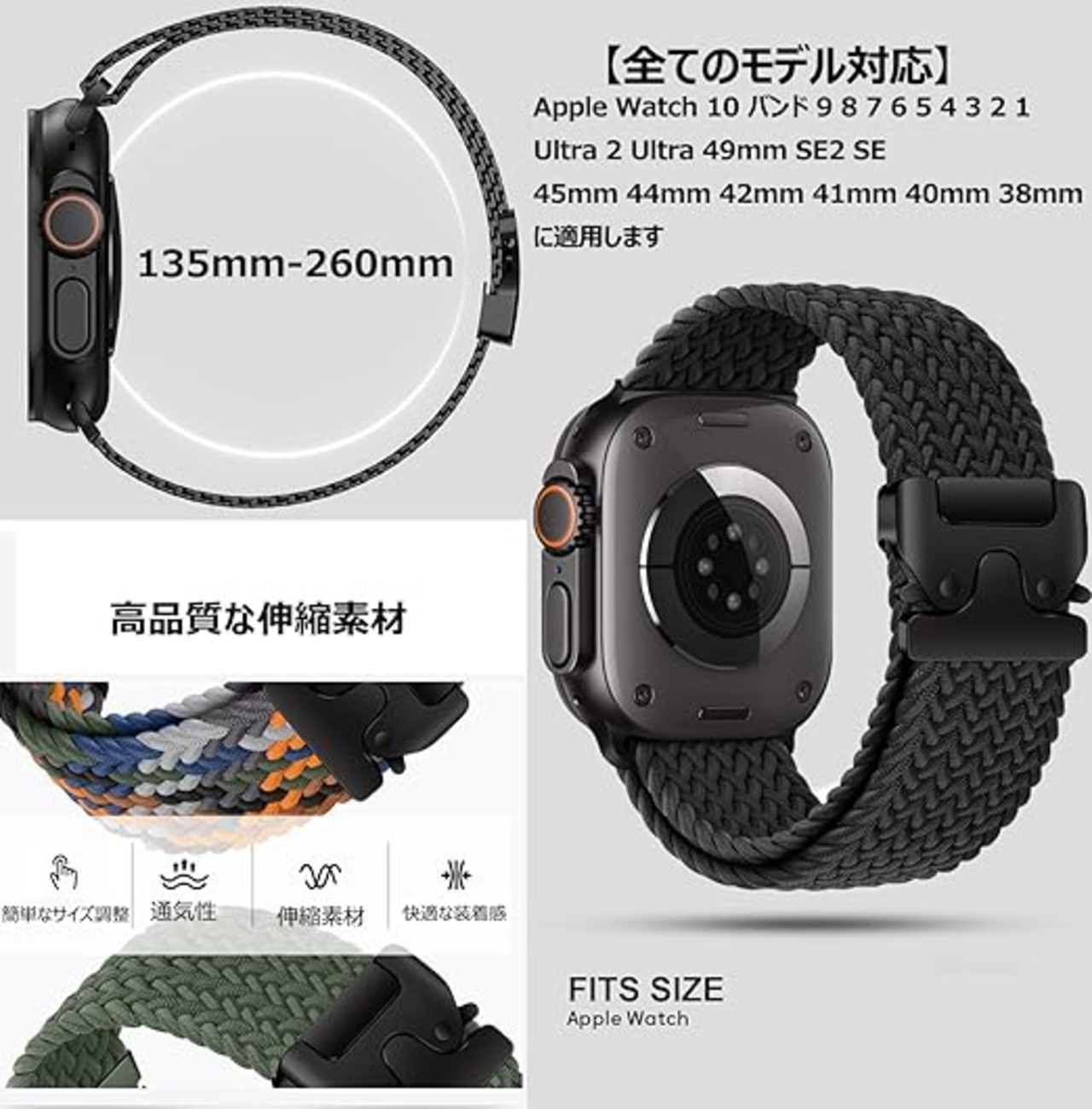 【全てのモデル対応】Apple Watch 10 バンド 9 8 7 6 5 4 3 2 1 Ultra 2 Ultra 49mm SE2 SE 45mm 44mm 42mm 41mm 40mm 38mmに適用します。コンパチブルアップルウォッチバンドは手首が140mm-220mmの方にフィットします、男女兼用のデザインです。※Apple Watch本体は含まれておりません。