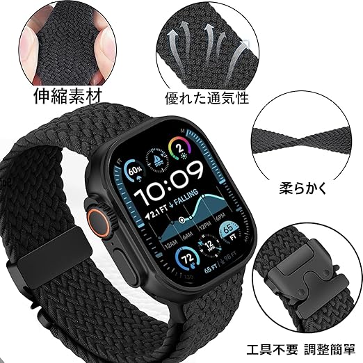 アップルウォッチ バンド Apple Watch バンド 42mm 41mm 40mm 38mm 編み込み 伸縮 調整可能 ソロループ Series 10 9 se2 se 8 7 6 5 4 3 ultra2 ultra に対応 全機種対応 スポーツバンド ナイロン ベルト a