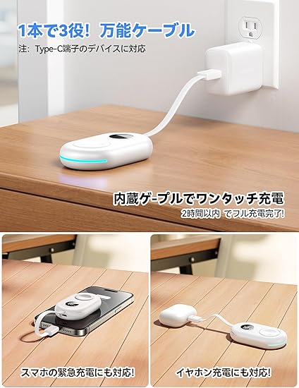 【2in1 USB C充電ケーブル内蔵!キーホルダー収納デザイン!】内蔵の