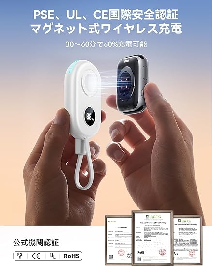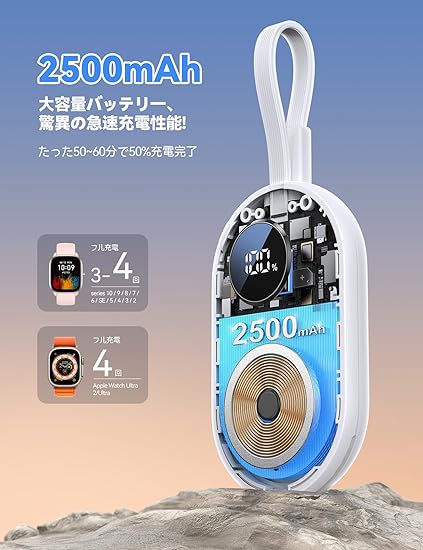 【2500mAh内蔵バッテリー!ストレスフリーな旅へ!】JOYROOM 上品な アップルウォッチ 充電器は、2500mAh の大容量を持ち、Apple Watch を 3〜4 回、または Apple Watch Ultra を 1.5〜2 回充電できます。Apple Watch モバイルバッテリーは 2 時間以内でフル充電可能です。アップルウォッチ のバッテリー残量を気にすることなく、ストレスフリーな旅を体験しましょう!