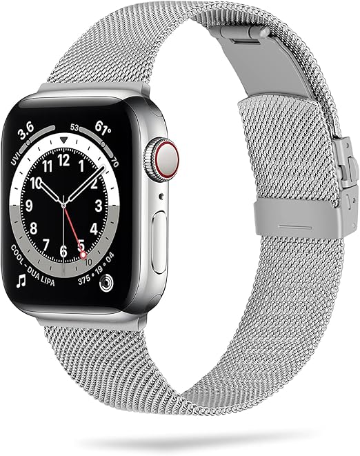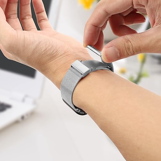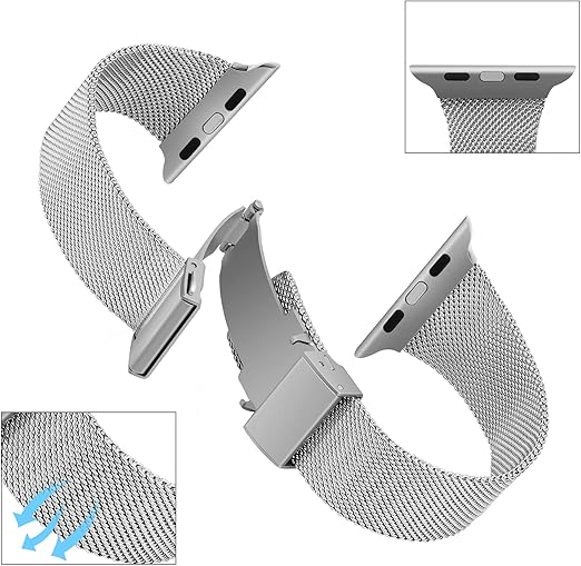 耐久性&通気性 --- 丈夫な折りたたみ式バックルを備えた耐久性のあるステンレス鋼金属製のバンドは、柔らかく通気性があり、耐摩耗性があり、色あせしにくいため、