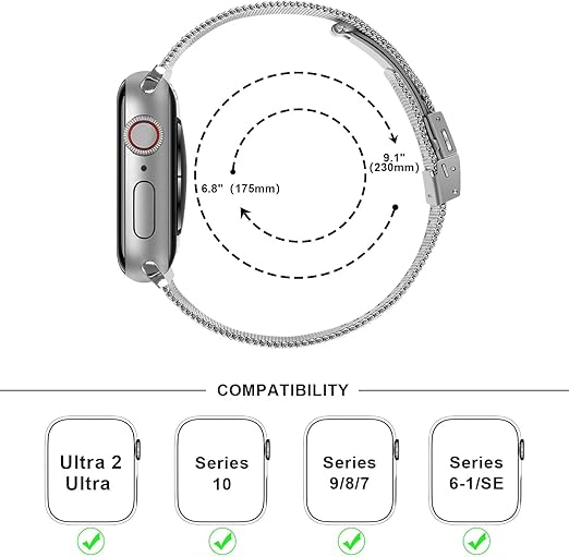 互換性のあるモデル --- Anlinser プレミアム通気性ステンレススチール製金属交換バンドは、apple watch 45mm 44mm 42mm se シリーズ7シリーズ6シリーズ5シリーズ4シリーズ3シリーズ2シリーズ1すべてのモデルに対応しています。 6.9インチから9.1インチ(180mm-230mm)の手首に適しています。