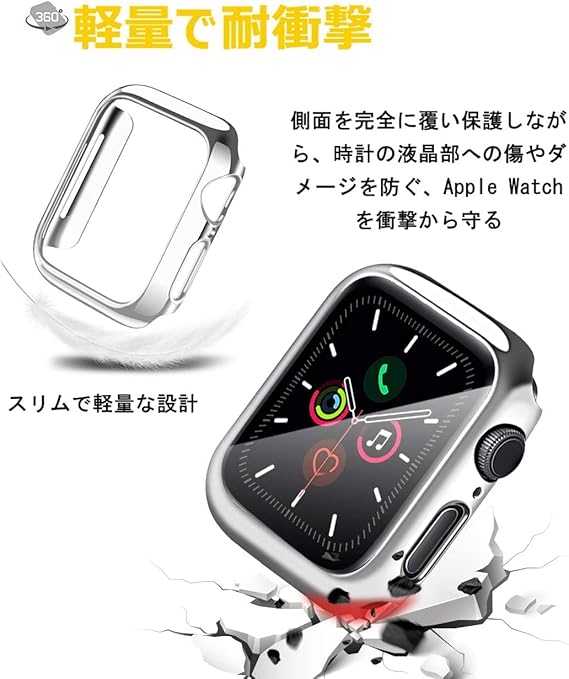 【2025強化版】ELYBYYLE for Apple Watch ケース Apple Watch Series 6/SE3/SE2/SE/5/4 40mm対応 一体型 日本旭硝子材 二重構造 applewatch 用カバー アップルウォッチ ケース 全面保護 耐衝撃 装着簡単 シルバー a