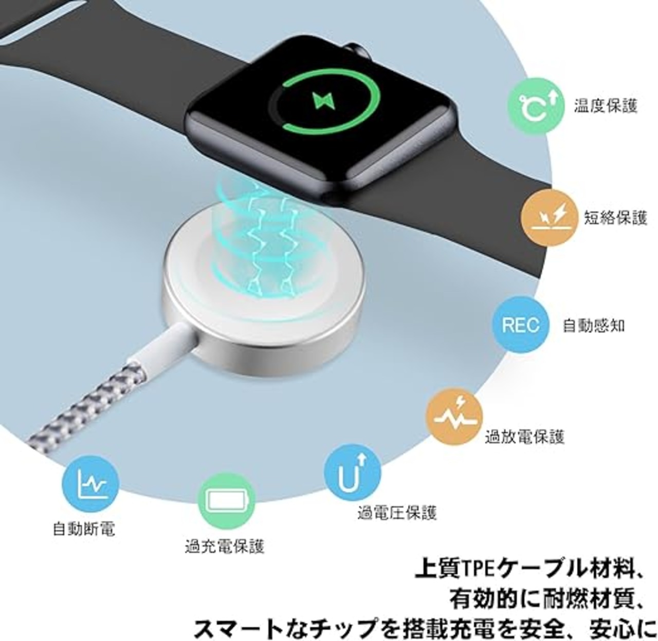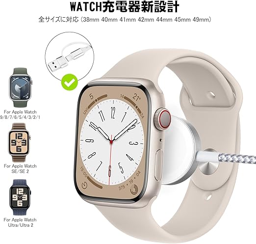 【Apple Watch 充電全シリーズ対応】Apple Watch Series 10/9/8/7/6/5/4/3/2/1/SE/Ultraに対応いたします。※弊社のApple Watch 充電器はアップルウォッチ専用に設計されているので、他のウォッチには対応できません。また、本製品は自動的にアップデートすることができ、最新のシステムにも対応可能です。