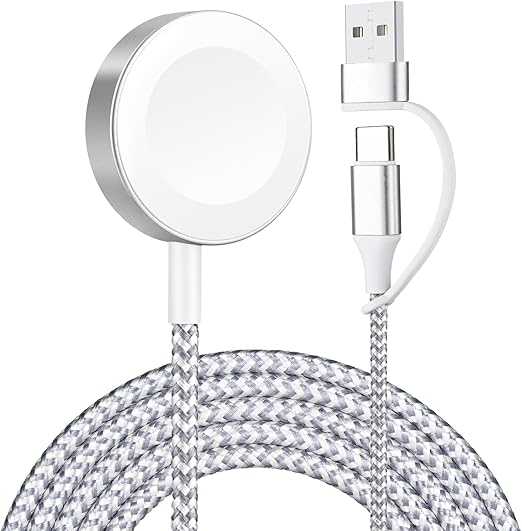 【2025新設計】POLINK 2in1 USB A+C for アップルウォッチ 充電器 Apple Watch 充電器 充電ケーブル ワイヤレス 充電機 マグネット式充電ケーブル 持ち運び便利 軽量 急速充電器 Apple Watch Series10/9/8/7/6/5/4/3/2/1/SE/Ultra 対応 USB-A&C シルバー ホワイト a