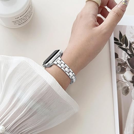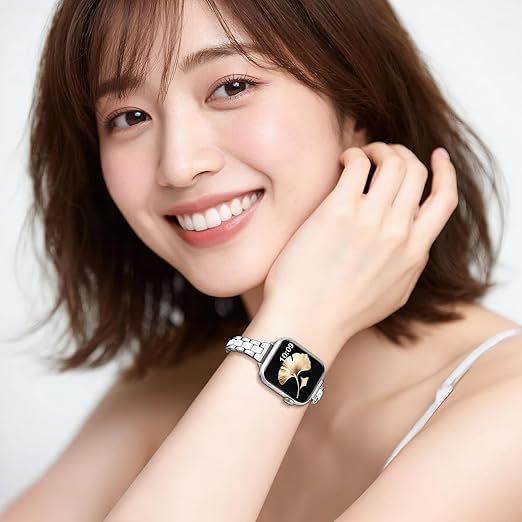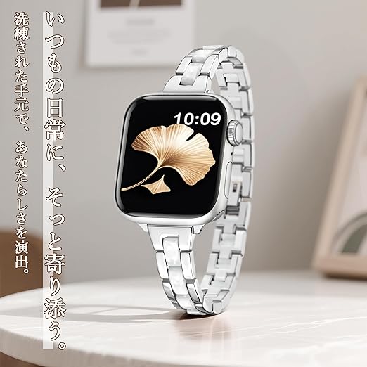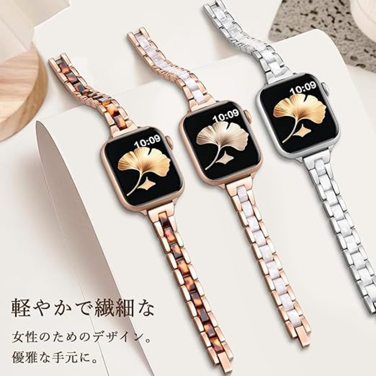 【細身で優雅なデザイン】このアップルウォッチバンドは、合金と樹脂の新しいコンビネーションデザインを採用し、軽やかで細身のシルエットを実現しています。女性の手首にぴったりフィットするこのデザインは、日常使いに最適で、様々なフォーマルな場面にもぴったりです。ペアリングすることで、全体的な雰囲気を引き立て、独自の個性と品格を表現します。