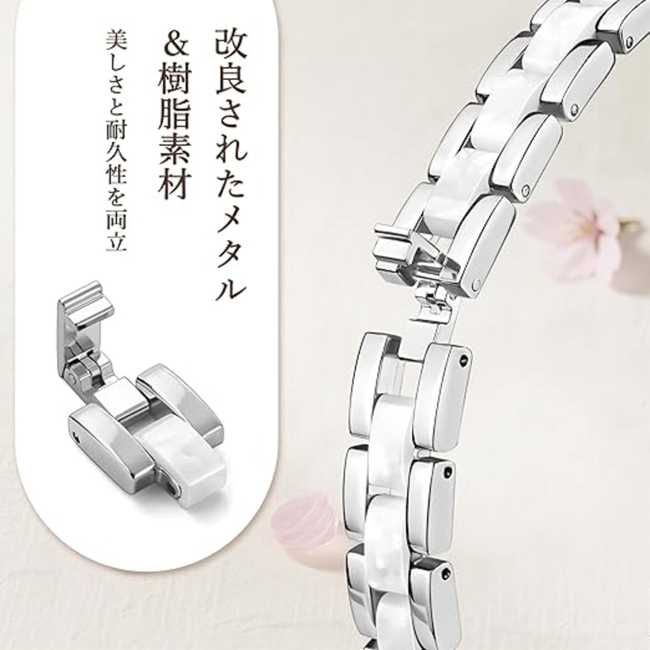 Aniaboho アップルウォッチ バンド 細身デザイン 金属と樹脂の素材の組み合わせ apple watch バンド 快適 46mm 45mm 44mm (42mm Series 3/2/1) 対応 iWatch series 11 SE 10 9 8 7 6 5 4 3 2 1ベルト レディース 調整可能(シルバー -ホワイト) a