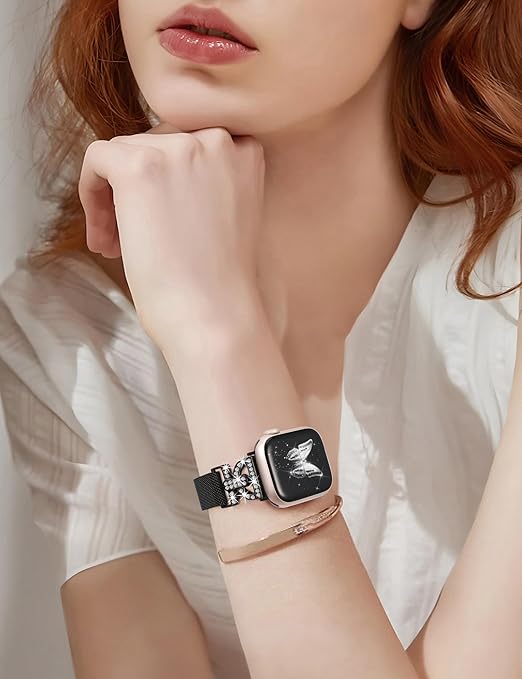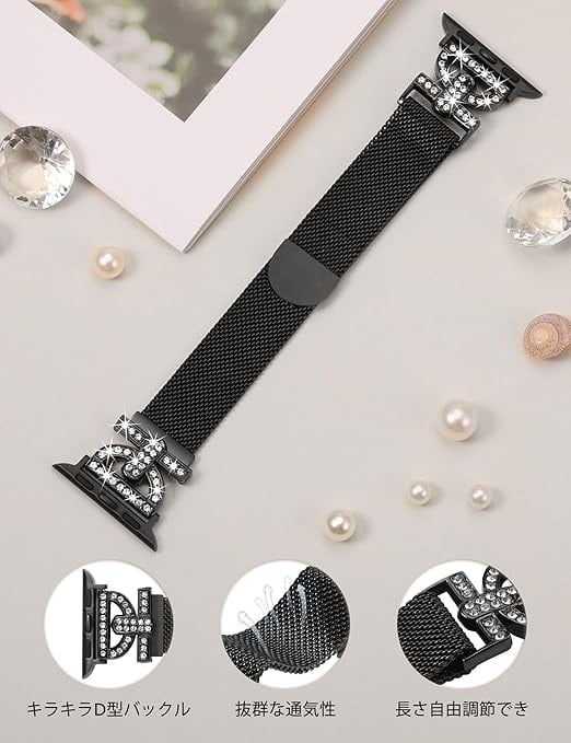 【エレガントなデザイン】:このApple Watchバンドはメッシュのステンレス鋼本体+キラキラDバックル組み合わせて、デザインと実用性を兼ね備えた製品です。洗練された外観と快適な着け心地は、カジュアルにもフォーマルにも最適!