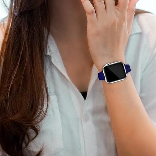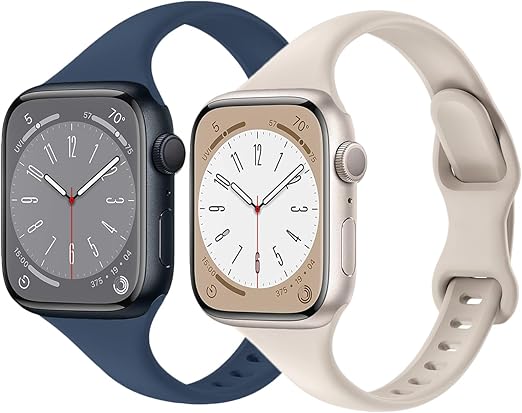 コンパチブル Apple Watch バンド レディース スリム シリコン スポーツバンド46mm 45mm 44mm 42mm 41mm 40mm 38mm アップルウォッチ バンド Series 11/10/9/8/7/SE/6/5/4/3/2/1 交換ベルト 通気 柔らかい 防水(スターライト/ダークブルー、46/45/44/42mm(series3の42mm)) a