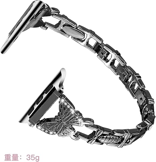 [Daturus] 互換 Apple Watch バンド series10/9/8/7/6/5/4/3/2/1/SE対応 アップルウォッチ ベルト ダイヤモンド付きステンレスベルト 金属ベルト アップルウォッチバンド 交換バンド 女性向け お洒落・ファッション バタフライデザイン 工具なし調節可能(38mm/40mm/41mm/(42mm Series10),黒) a