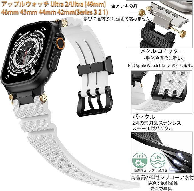 BinGeLi コンパチブル アップルウォッチ バンド 49mm 46mm 45mm 44mm 42mm Apple Watch バンド スポーツ シリコーン 交換用 ベルト 耐衝撃 防水 防汗メンズ Watch Ultra2/Ultra Series 10 9 8 SE2 7 6 SE 5 4 3 2 1に対応