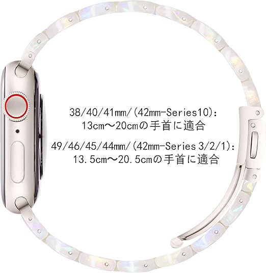 【適応性】このコンパチブルApple Watchバンドは、42mm-Series10、41mm、40mm、38mmのApple Watch Series 10、Series 9、Series 8、Series 7、Series 6、Series 5、Series 4、Series 3、Series 2、Series 1、SE 2、SEに対応しています。バンドの長さは13cmから20cmの手首に適しており、大多数の方にフィットします。
