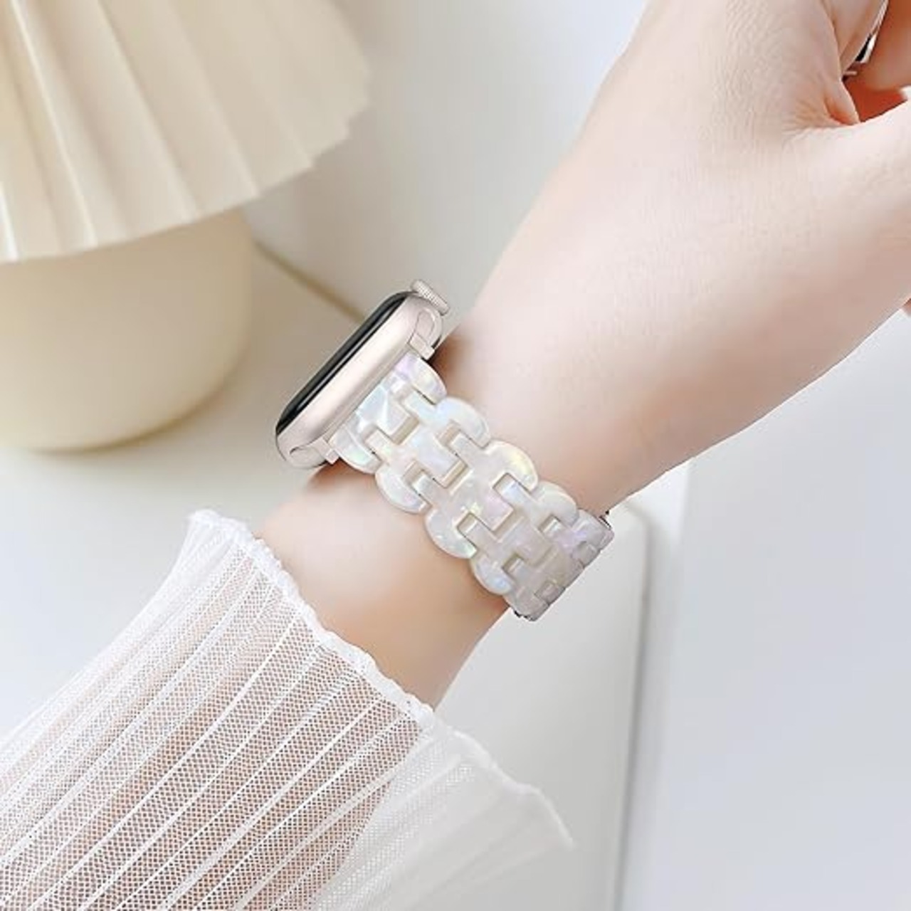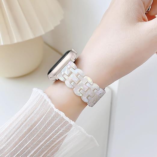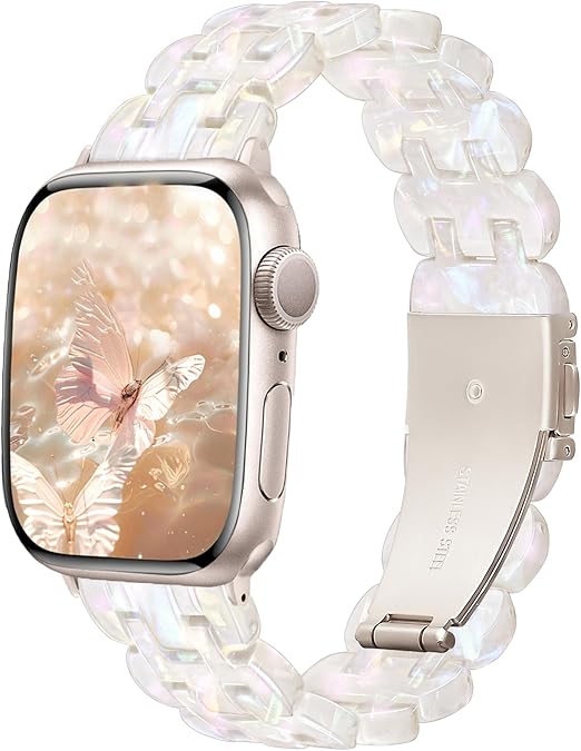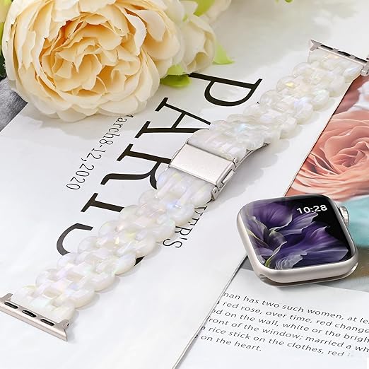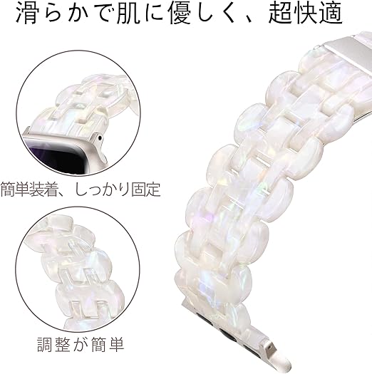 [Bokoios] 互?アップルウォッチ バンドレディース かわいい樹脂ベルト42mm 41mm 40mm 38mm おしゃれ互?Apple Watch バンド スポーツ防水互?アップルウォッチバンド 蒸れない軽いコンパチブルAppleWatch ベルト 調整簡単互?Apple Watch Series 10 SE 9 8 7 6 5 4 3-多色な白、スターライトバックル a