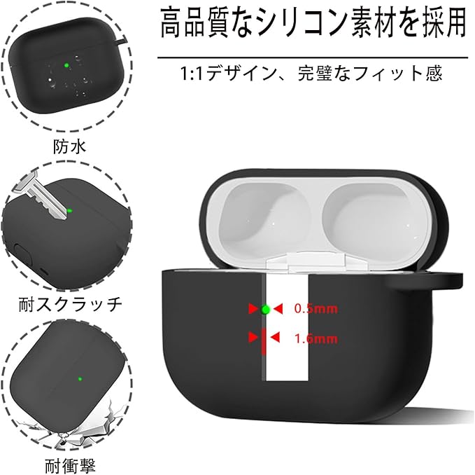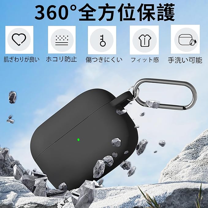 YAODLE AirPods pro 3 ケース シリコン素材 AirPods Pro 3 用ケース ワイヤレス充電可能 キズや汚れ防止 指紋に強く フック付き紛失防止(ブラック) a