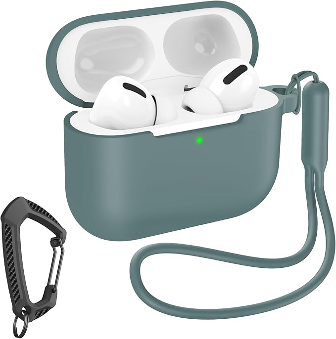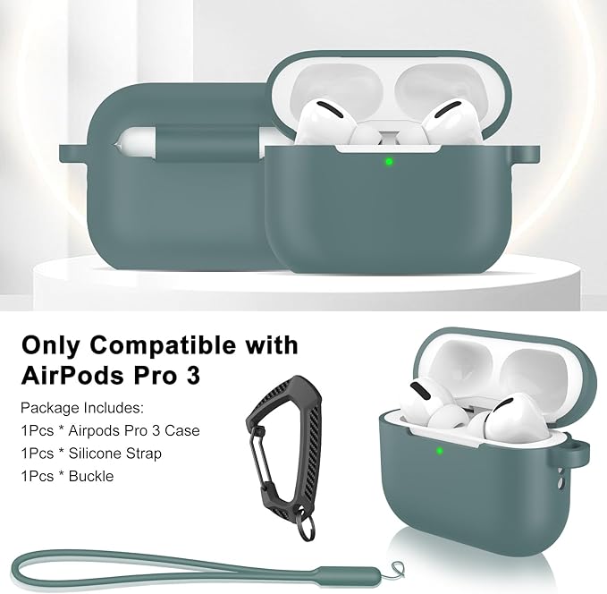 MILPROX AirPods Pro 3 ケース(2025)エアーポッズ プロ 第3世代 専用ケース シリコン ソフト 全面保護 耐衝撃 防震 防塵 落下/紛失防止 ワイヤレス充電対応 カラビナ&シリコン製ストラップ付き(パイングリーン) a
