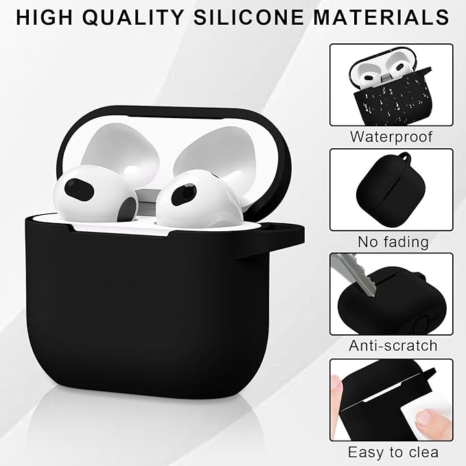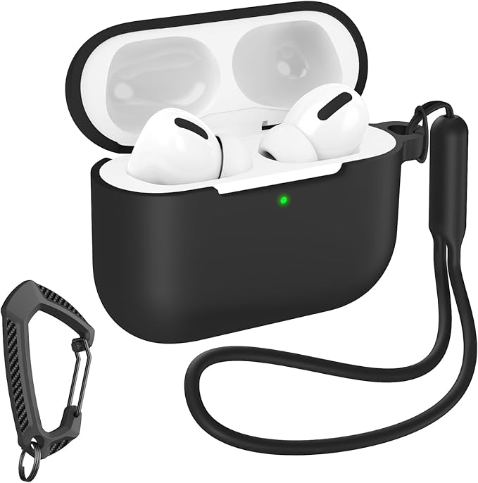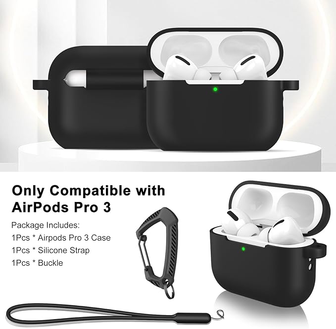 MILPROX AirPods Pro 3 ケース(2025)エアーポッズ プロ 第3世代 専用ケース シリコン ソフト 全面保護 耐衝撃 防震 防塵 落下/紛失防止 ワイヤレス充電対応 カラビナ&シリコン製ストラップ付き(ブラック) a