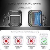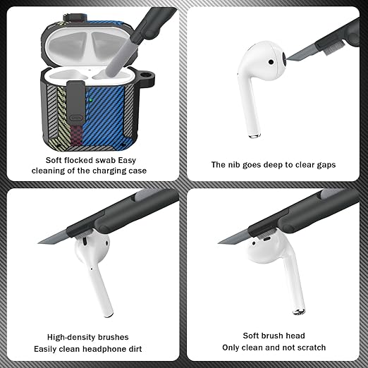 RFUNGUANGO Airpods ケース 2 および 1 クリーニングキット付き、Apple AirPods 第 2 世代/第 1 世代充電ケース、キーチェーン付き、落下防止ラッチデザイン、フロント LED 可視、AirPod ケース - カーボンファイバーブルー。 a