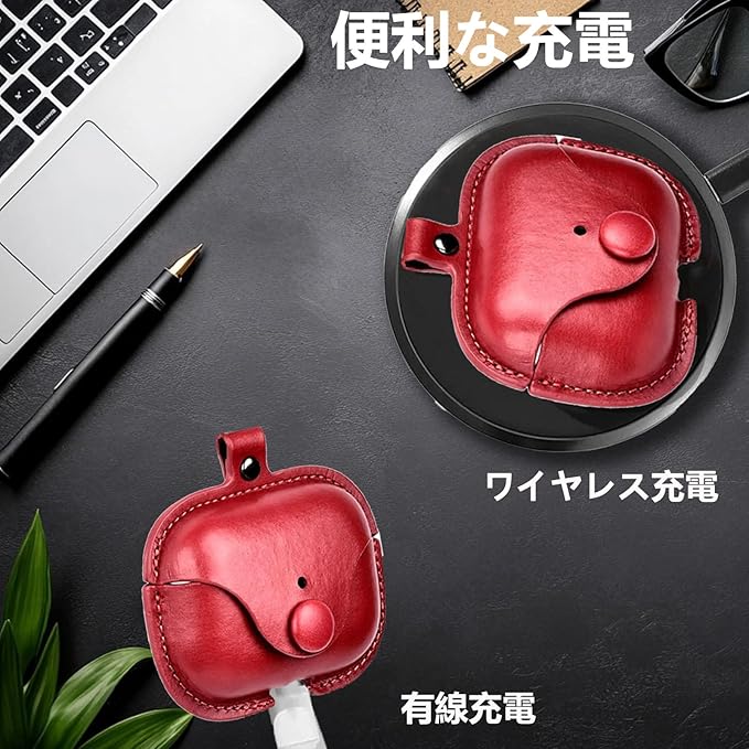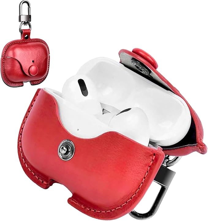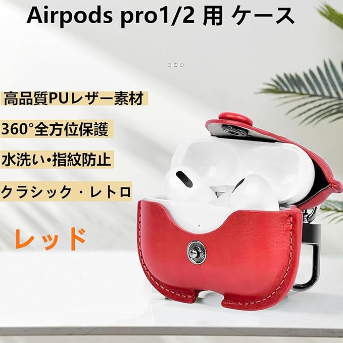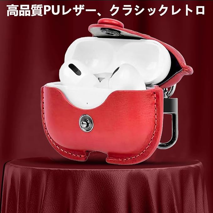 CIOODDW Airpods Pro2 ケース対応 airpods pro 第一世代/第二世代 高級本革 PUレザー カバー 全面保護 充電 LEDライトが見える 耐衝撃 軽量 キズ防止 おしゃれ ワイヤレス充電対応 キーホルダー付き エアポッツプロ ケース(レッド) a