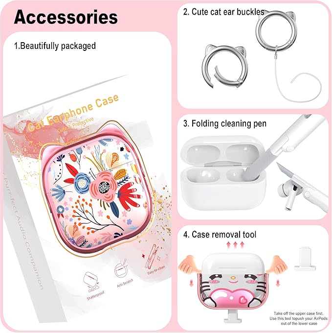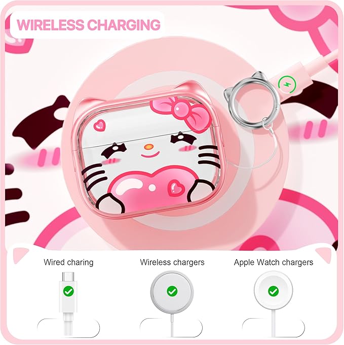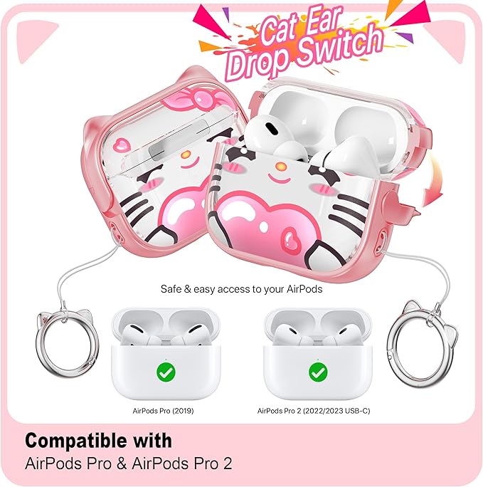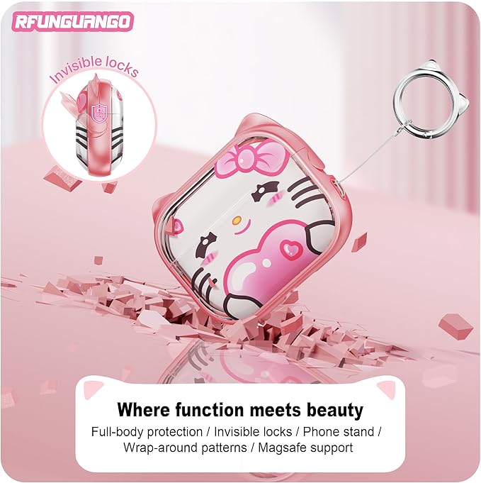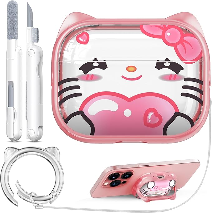RFUNGUANGO AirPods Pro第2世代保護ケースと互換性があり、携帯電話ホルダー機能付き、さまざまな色から選択可能、AirPods Pro 2ケースに適しています、ピンク+かわいいスタイル a