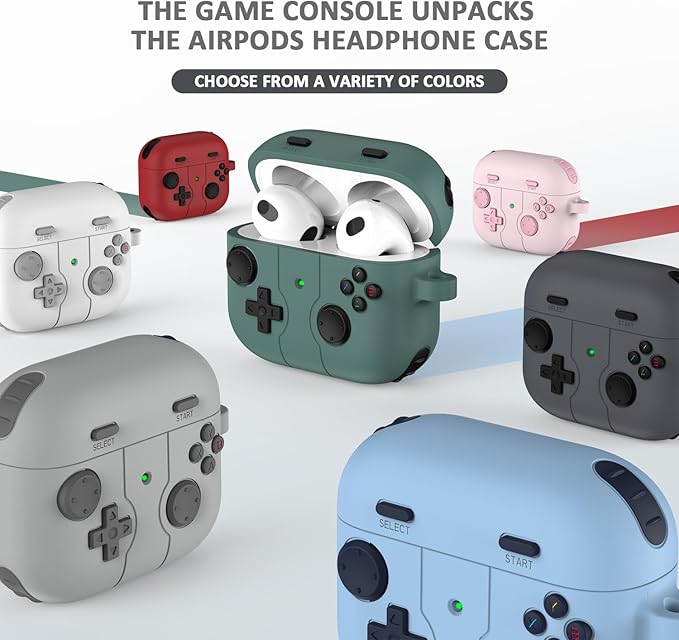 RFUNGUANGO AirPods 第 3 世代ケースカバー キーチェーン付き ゲームプレーヤーデザイン 子供 ティーンエイジャー 女性 男性用 AirPods 第 3 世代充電ケース用ソフトシリコンケース グリーン a