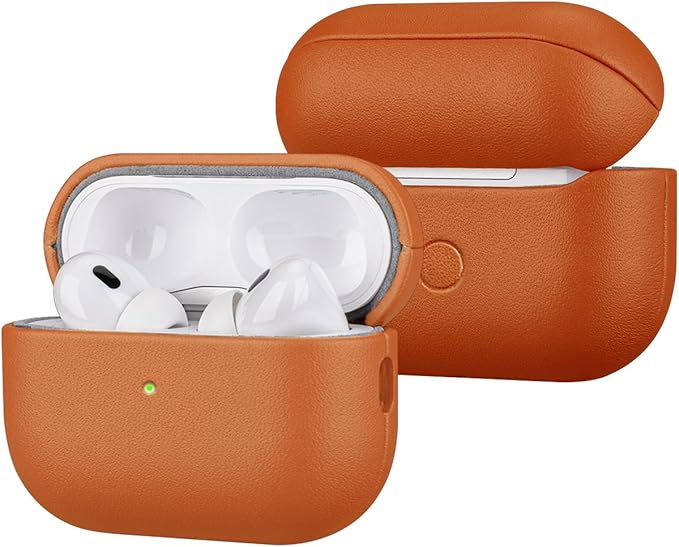 JDFOGO Leather Case For AirPods Pro2 第2世代用 耐衝撃 保護ケース レザーケース【USB-Cケース対応】【日本正規代理店保証品】 (オレンジ色) a