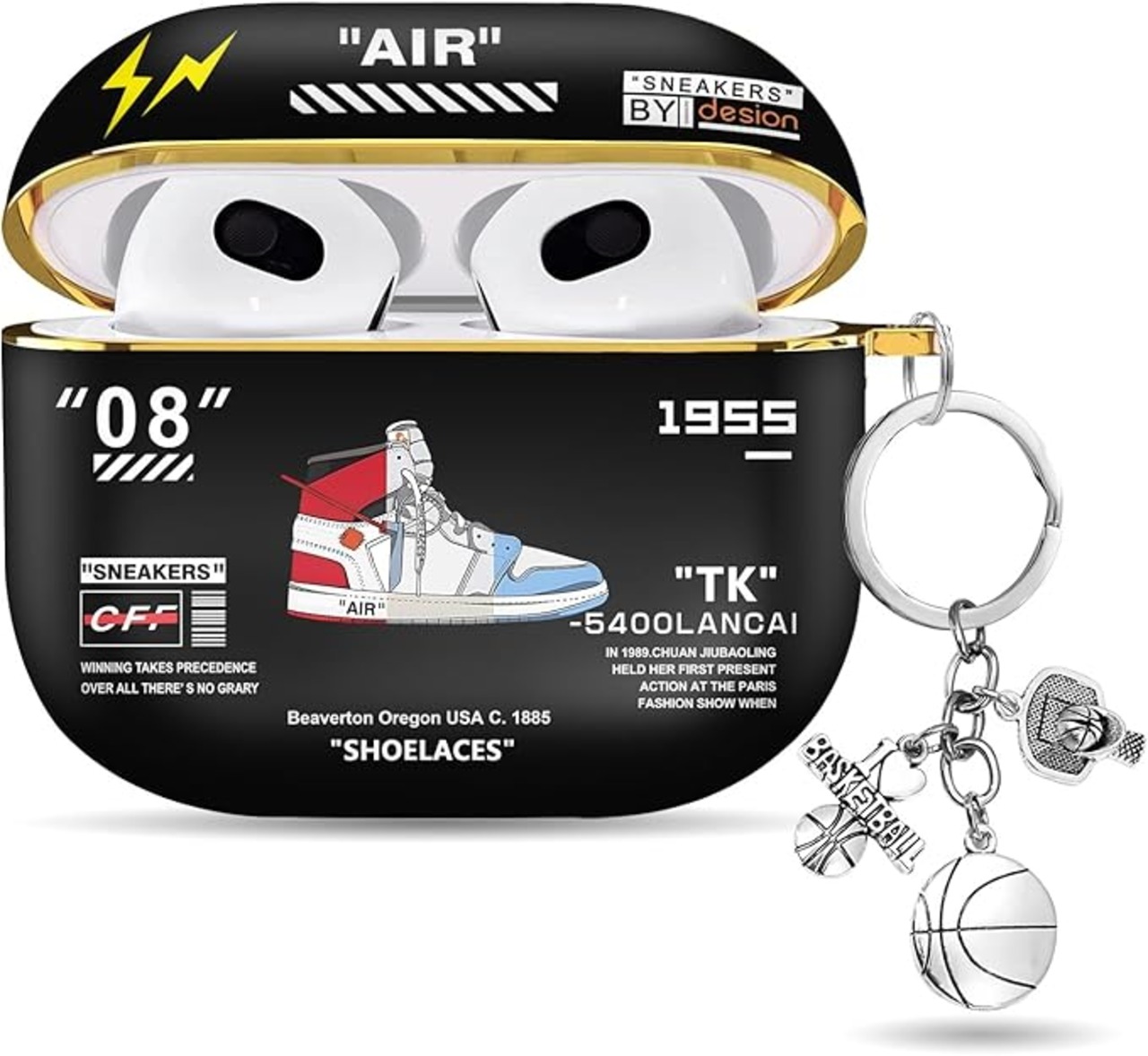 Airpods 3 ケース 2021 Airpods カバー 第3世代 バスケットボールキーホルダー付き 創意 デザイン おしゃれ キャラクター 可愛い エアポッツ 第三世代 ケース ワイヤレス充電対応 防塵 耐衝撃 全面保護カバー アップルイヤホン 保護ケース Airpods 第3世代 ケース b