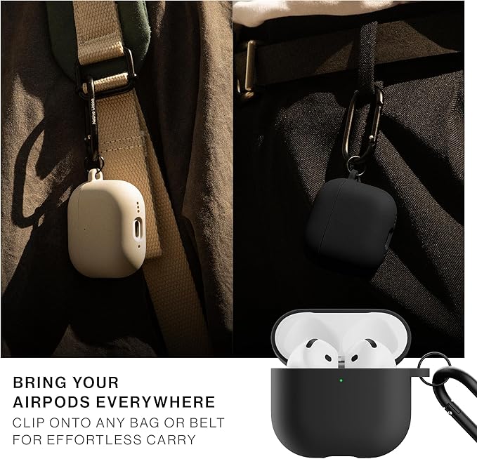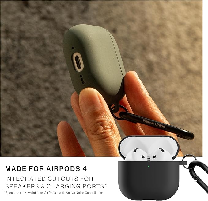 Native Union (ネイティブユニオン) Active ケース − AirPods 4 およびアクティブノイズキャンセリング機能付き AirPods 4 用 − シルキースムースマットシリコン製ケース − どこにでも取り付け可能なクリップ付き (ブラック) a